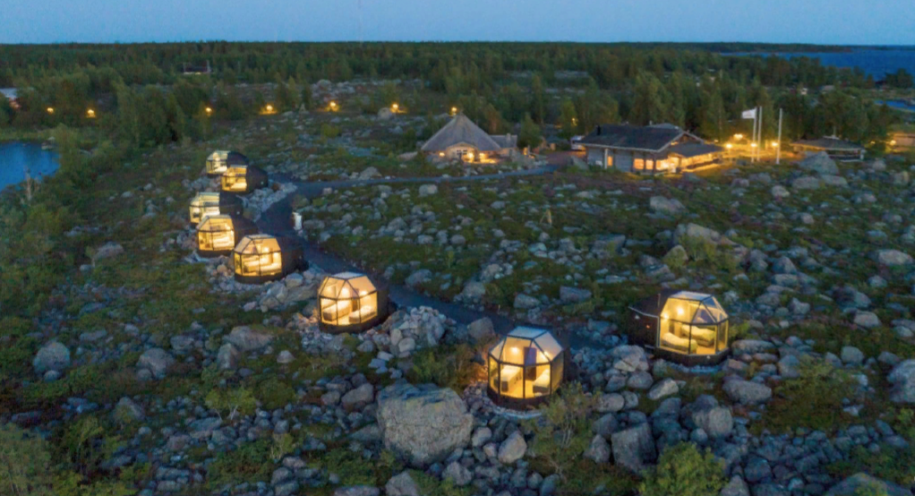 Если ваши туристы хотят быть ближе к природе, но при этом проживать с комфортом и в оригинальных интерьерах, предложите им выбрать стеклянные иглу отеля Santa’s Hotels. Туристы, остановившиеся в новых номерах со стеклянной крышей, увидят арктическую лапландскую природу с совершенно новой стороны, ведь из окон открывается не только потрясающий вид на Луосто, но и можно любоваться великолепным Северным сиянием, полуночным солнцем, яркими красками лапландской осени и темнотой полярной ночи.